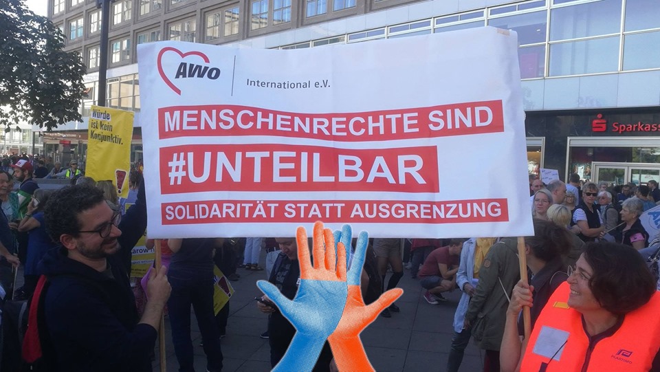 Diese Aussage sollte eine Selbstverständlichkeit sein. In der Realität sieht es aber so aus, dass zunehmend eine Politik der Ausgrenzung vollzogen wird. Das hat zur Folge, das Menschen aufgrund von Herkunft, Asylstatus und Fluchthintergrund diskriminiert werden. Auch ihre Menschenrechte geraten dadurch in Gefahr. Wir wollen solidarisch aufstehen und sagen: Wir lassen nicht zu, dass Sozialstaat, Flucht und Migration gegeneinander ausgespielt werden.